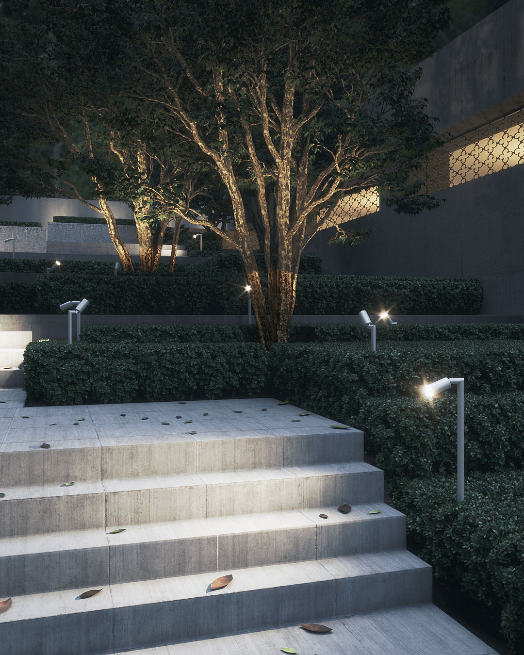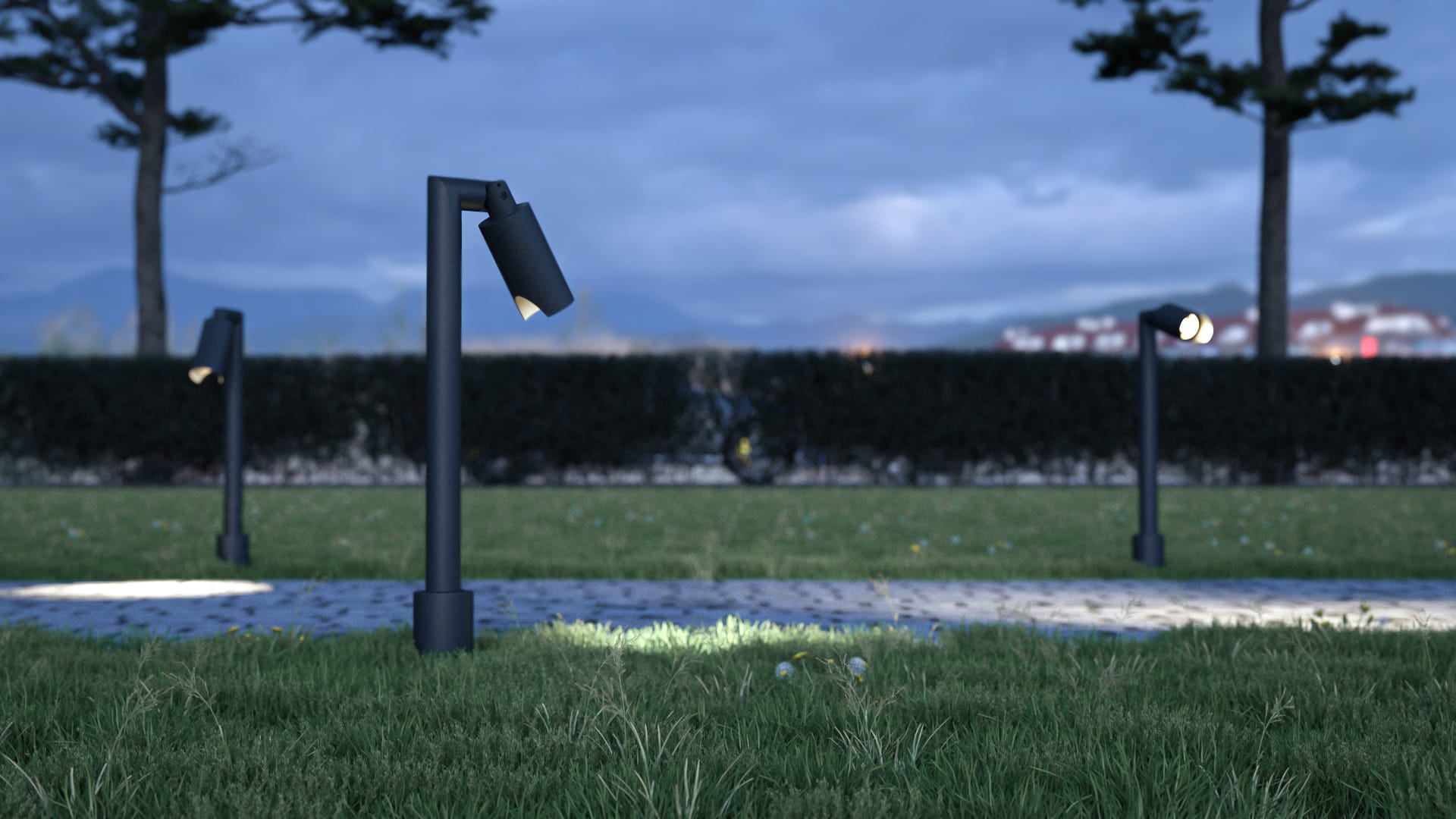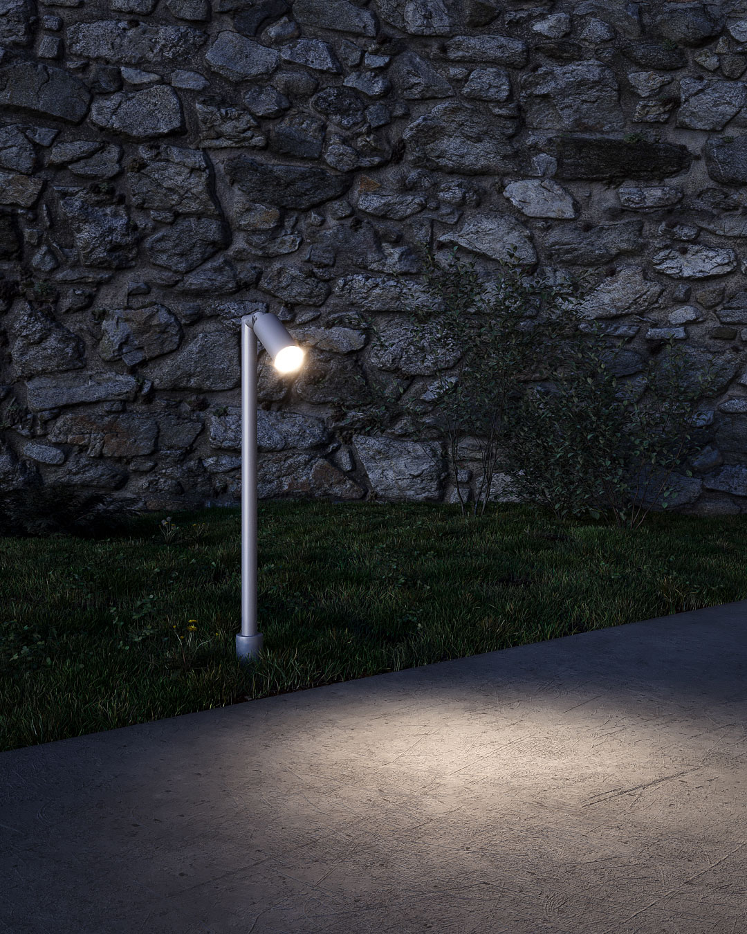 Bollard light with 8W LED. Adjustable medium-sized spotlight head.
