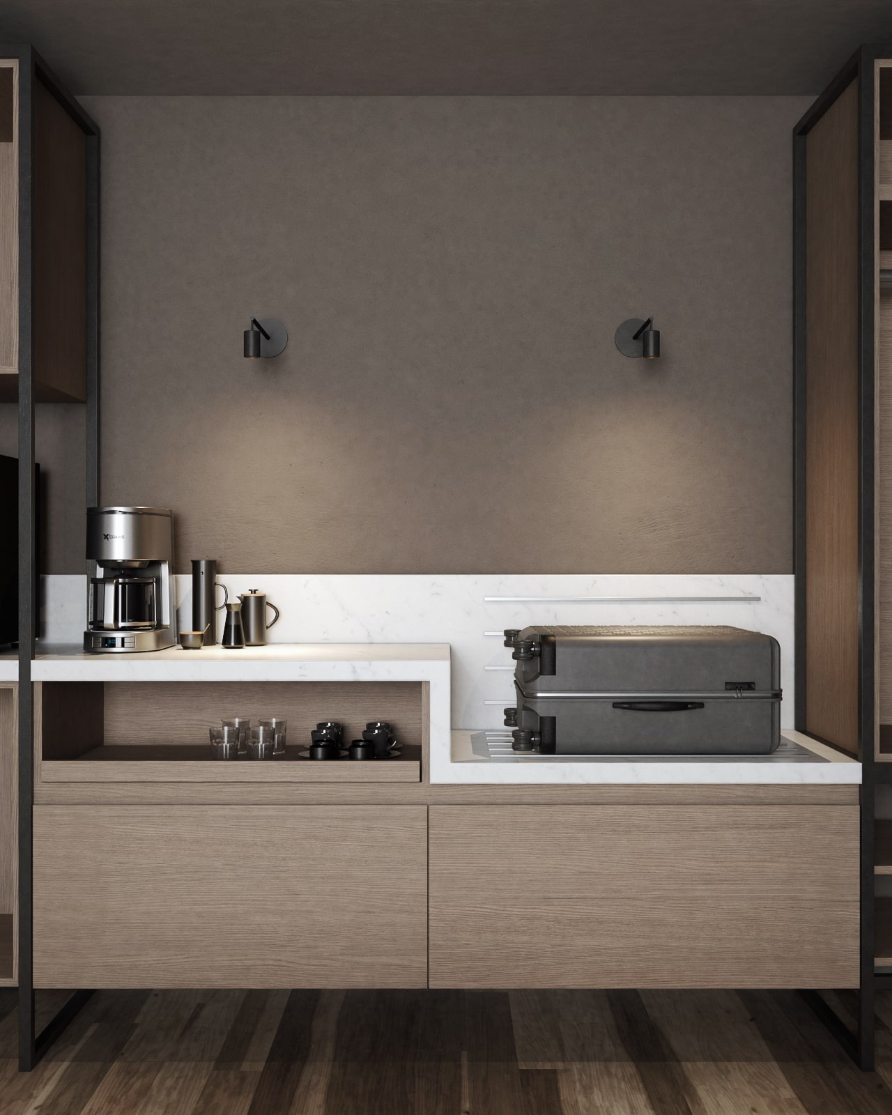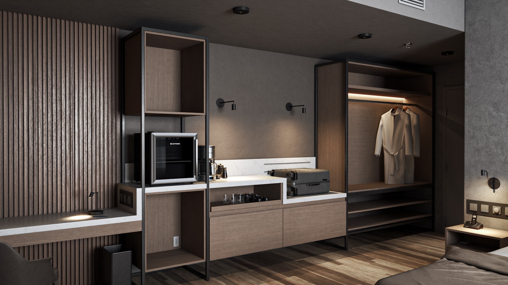 Adjustable & directional medium-sized spotlight with 4W or 8W LED, mounted on walls. Thicker stem for better support. Ideal for indoor applications to illuminate walls, pictures, statues and other display objects.